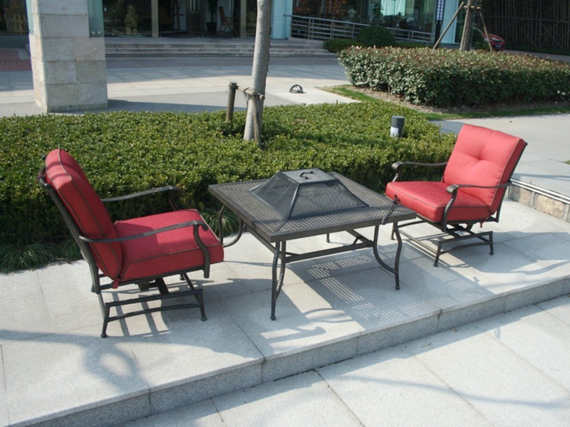 材質:碳鋼、鑄鋁,配戶外布和戶外高密度海綿製作而成的座墊。