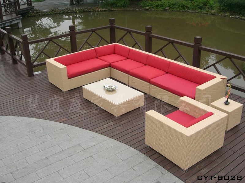 材質:常用木材有:山樟木、菠蘿格、柚木,配戶外布和戶外高密度海綿製作而成的座墊。