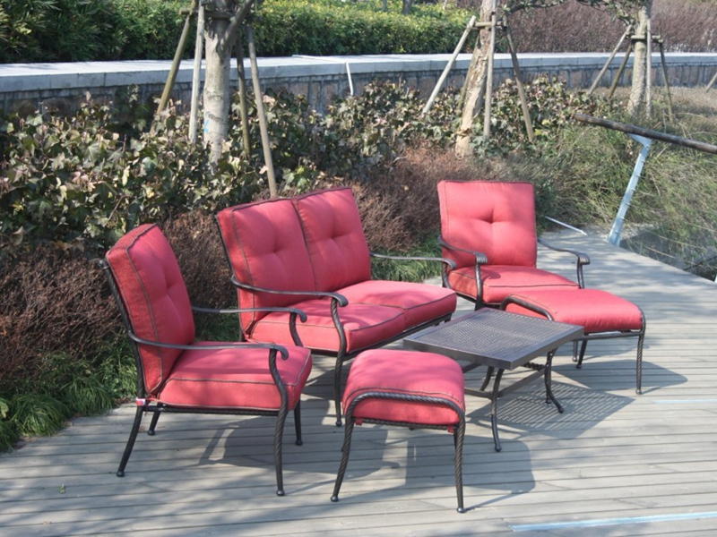 材質:碳鋼、鑄鋁,配戶外布和戶外高密度海綿製作而成的座墊。